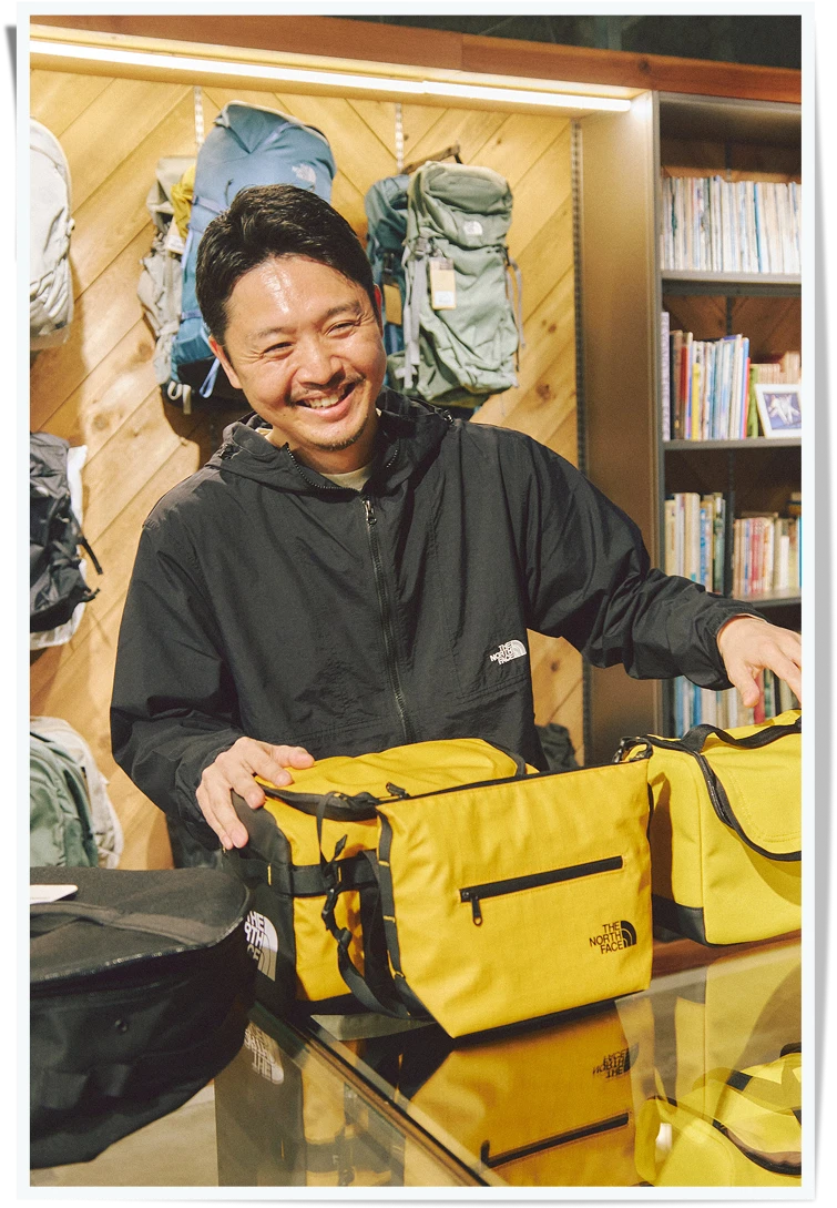 毎朝、息子を保育園に送ってから出社するのが神山のルーティーン。1日の中で多くの時間を過ごすのは、新作アイテムのサンプルが大量に並ぶプレスルームだという。コミュニケーションの手法は、デジタルプロモーションや雑誌のタイアップ、イベントの実施など多岐にわたる。直近で販促を担当したカラフルなキャンプアイテムを手に取りながら「このスパイスストッカーにお気に入りのスパイスをたくさん詰めて、この夏は家族でキャンプに出かけたいんです」と、笑って話す。「外部の編集者やスタイリスト、デザイナーとの関わりも非常に多い部署です。社内で商品の企画担当から吸い上げたプロダクトの意図を、クリエイティブを担うスペシャリストたちに向けて正しく届ける。例えば新作のレインコートも、基本的な防水機能は押さえつつ、シティウェアとしての魅力も最大限に発信していきます。メディア向けにサンプルの貸し出しも頻繁に行うので、『The North Faceらしさ』と新しさのポイントをしっかりと伝えられるよう、意識しています」
