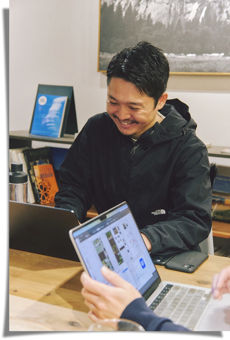 WEBや紙でのコミュニケーションにおいて必要不可欠なクリエイティブの制作。社内外の人たちと連携し、新シーズンのイメージ作りに必要なロケハンや撮影など、フィールドで1日を過ごすこともある。「担当しているキャンプカテゴリーの撮影では、アートディレクター、カメラマンとチームで動くことが多く、これまで富山、長野、群馬など全国各地のキャンプ場で撮影をしてきました」。事前準備が肝となるのはイベントも同様だ。アクティビティと音楽を軸とする昨夏の「マウンテンフェスティバル」で、神山は会場となるキャンプ場の視察や自治体への連絡、アクティビティの安全管理や集客など、運営全般を担当。「転職したばかりのタイミングでイベント運営に携わることも初めてだったのですが、先輩や他部署のスタッフに力を借りて、なんとか乗り越えることができました。地域の方も協力してくださり、感謝しかありません。今思い返すと『自分たちも楽しみたい!』という想いが社員たちの根底にあるから、みなさん能動的に動いてくださったのかなと思います」