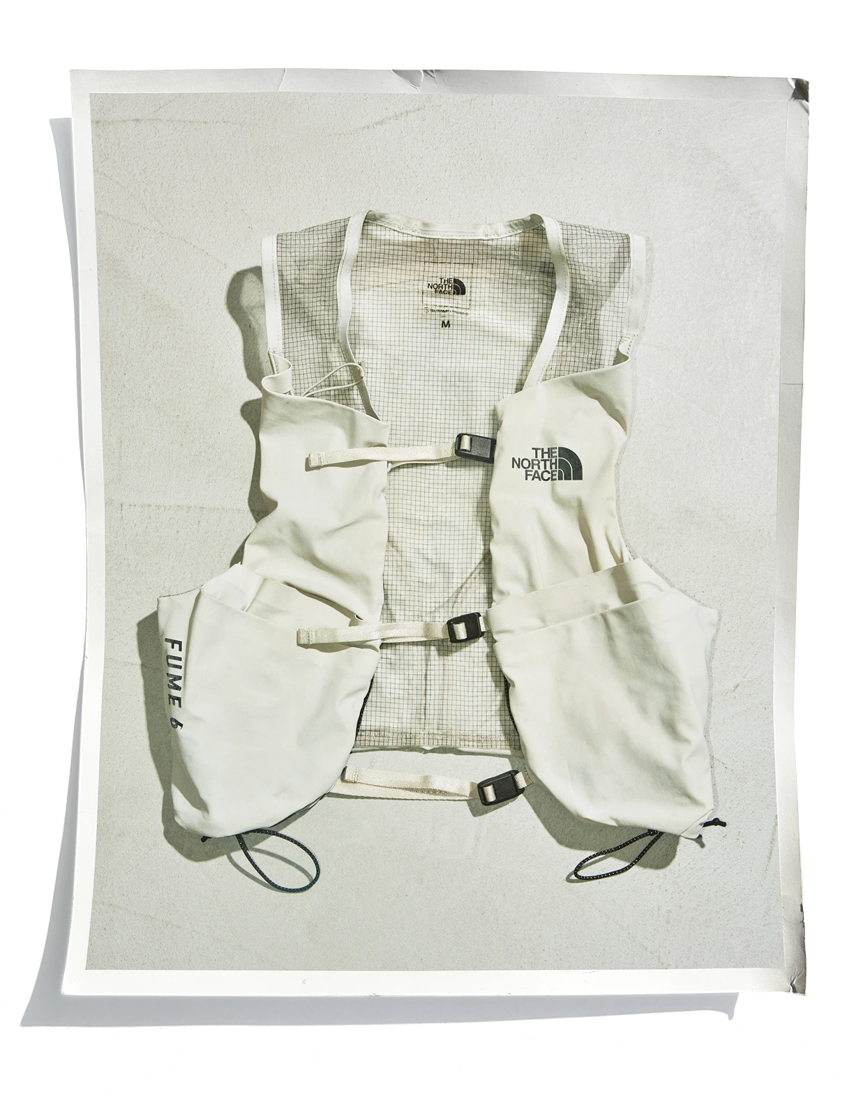 「サンプルは全部、残しているんですよ」と、宝物のように10以上のプロトタイプを見せてくれた〈HST Fume 6〉は、田嶌が最も思い入れのあるプロジェクト。世界のトップアスリートとともに開発するThe North Faceの最高峰ライン「サミット シリーズ」ということもあり、「中途半端なものは作れないというプレッシャーがありました。自分の経験を鑑みたり、アスリートたちとのコミュニケーションを重ねたりなど、苦労と思い出が詰まったアイテムです」。フィールドテストにはトレイルランナーの土井陵氏、森本幸司氏、鬼塚智徳氏の協力も。「実際に彼らに使ってもらい、フィードバックを受けて修正を重ねました。アスリートと一緒に開発することができたのは、デザイナー冥利に尽きる経験でした」