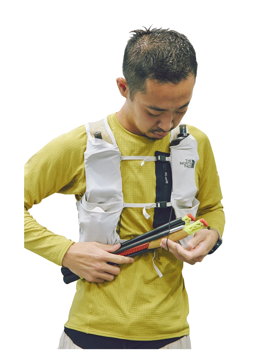 日常使いでテストをするプロダクトもあれば、実際に山などの自然に出向きフィールドテストを行うプロダクトもある。ゼロからデザイン・開発に携わったランニングベスト〈HST Fume 6〉のフィールドテストでは、阿蘇の山をアスリートとともに駆け抜けた。「トレイルランのプロにフィードバックをもらいつつ、私自身の経験も活かしながら進めました。アスリートの方と密にコミュニケーションを取り、一緒に開発できたことはとても印象的でした」。細部へこだわりを詰め込み、何度も改良を重ねるなど、紆余曲折を経てプロダクトが完成した時は喜びもひとしお。「何度も修正を繰り返した末に、トップアスリートのみなさんに使ってもらって、“これ、めっちゃいいよ!”と言ってもらえたのが本当に嬉しかった。彼らの背中に、自分がデザインしたギアが輝く光景を見て、何てやりがいのある仕事なんだと感じましたね」
