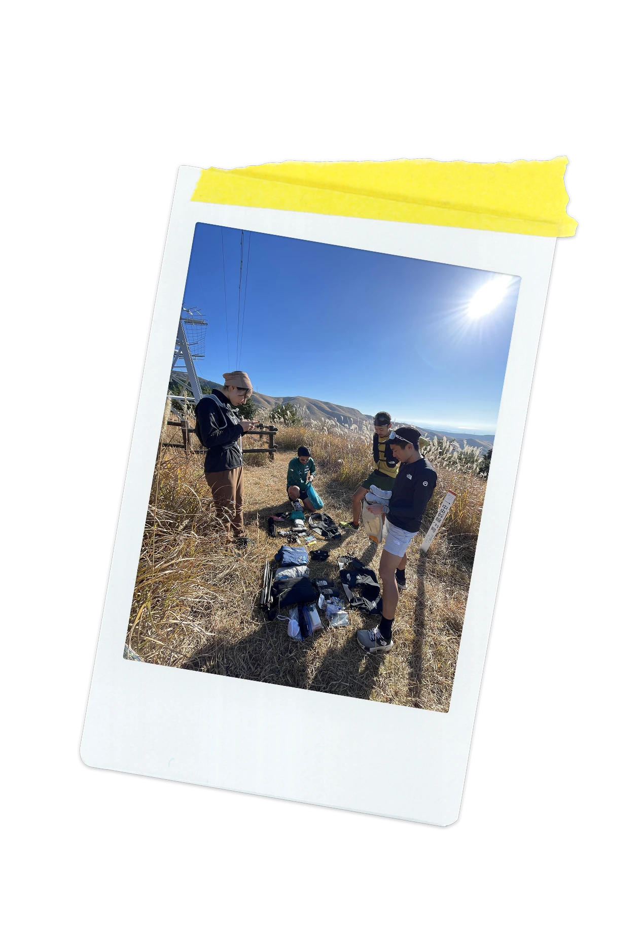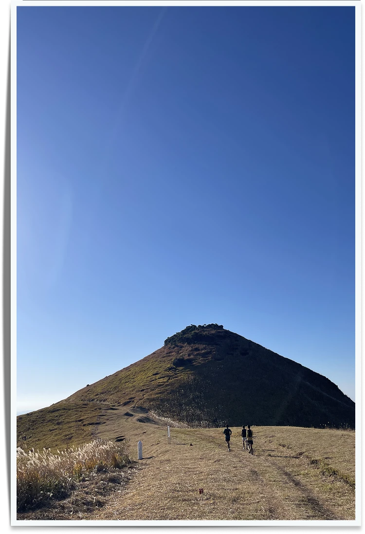 トレイルランのアスリートとともに行った阿蘇でのフィールドテスト。一緒に走りフィードバックをもらいます。