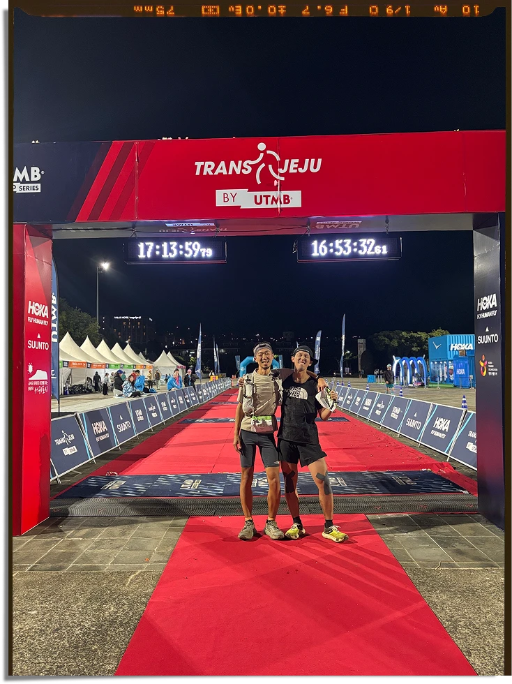 韓国・チェジュ島でのレースを同僚の吉村とフィニッシュ。レースのあとはローカルフードを堪能。