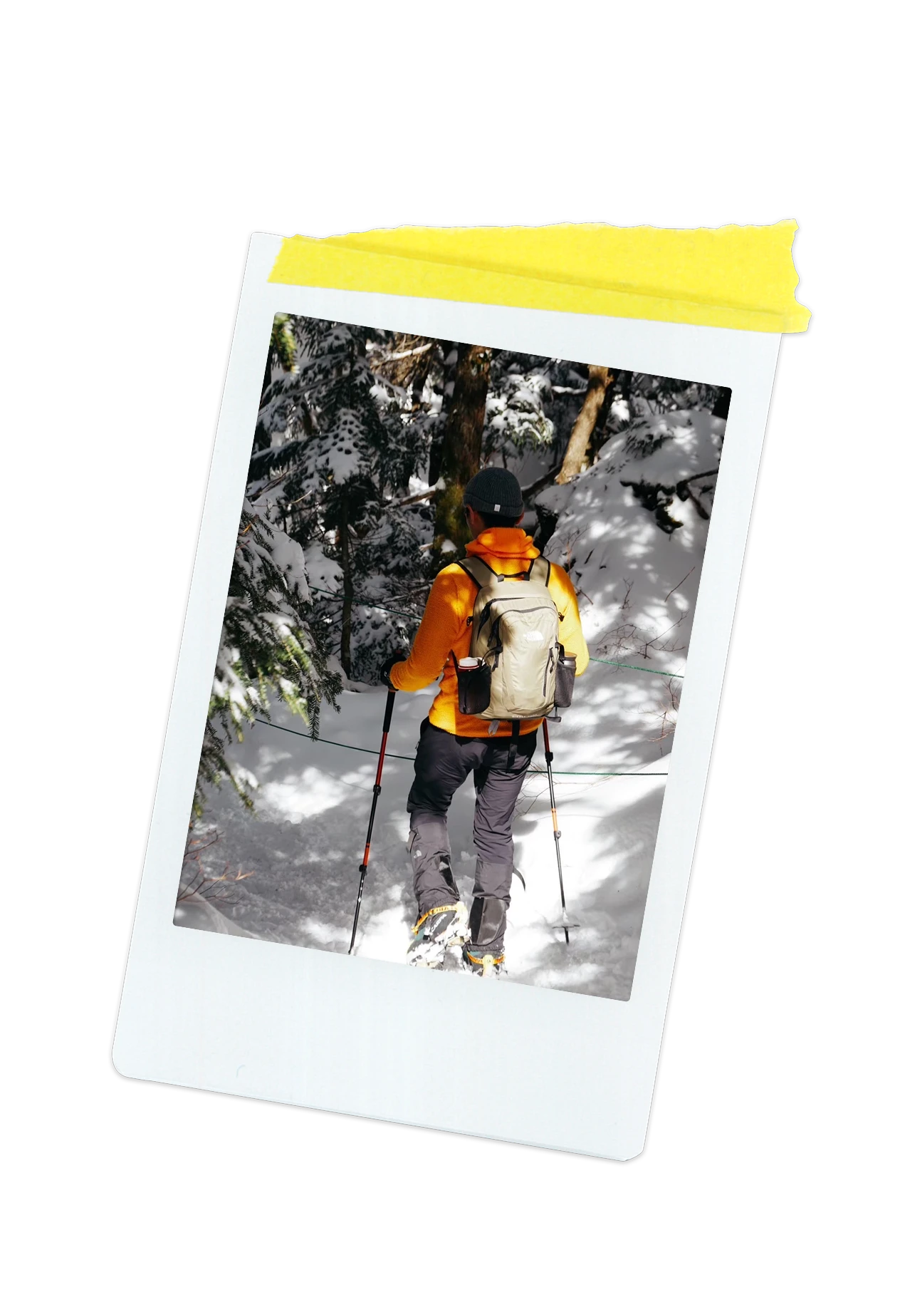 ウインターシーズンの趣味を尋ねると、「スノートレッキング」という答えが返ってきた。足もとにはアイゼン、両手にはストックを装着し、3、4時間かけてザクザクと雪山を散策しているそう。「アウトドア好きな友人とともに、毎年2回程度スノートレッキングに出かけています。2024年の冬は奥鬼怒川の秘湯をゴールにひたすら歩きました。天気にも恵まれ、雪山の澄んだ空気と景色は格別でしたね。今思い出したのですが、入社するよりも前に、初アルプス登山をともにしたのは、The North Faceの〈Climb Light Jacket〉でした。購入してからもう何年も経ちますが、アウトドアアクティビティには欠かせないアイテムとして永く愛用しています」